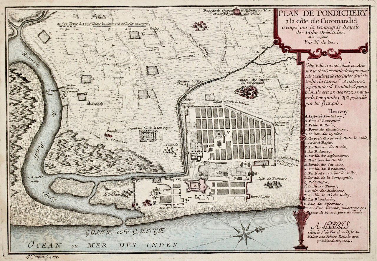 Plan de Pondichery a la côte de Coromandel. | Stampe | DE FER NICOLAS.