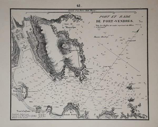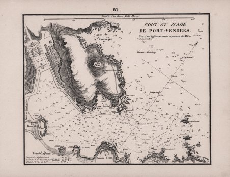Piano nautico tratto dal raro portolano "Recueil des Plans des Ports & Rades de la Mer Méditerranée de la Mer Noire & de la Mer d'Azof" edito a Marsiglia da Joseph Maistre nel 1862 e basato sulle carte nautiche dle Depote de la Marine francese. Litografia, in buono stato di conservazione. Nautical chart taken from the rare pilot "Recueil des Plans des Ports & Rades de la Mer Méditerranée de la Mer Noire & de la Mer d'Azof" published in Marseille by Joseph Maistre in 1862 and based on the nautical charts of the French Depote de la Marine.Lithograph, very good condition. Cfr.