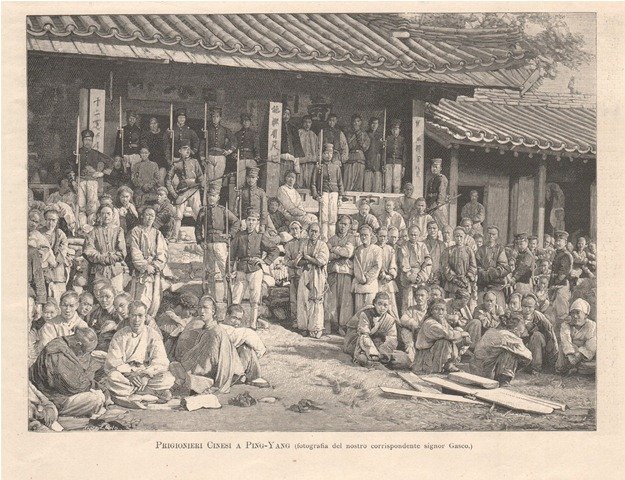 Veduta di prigionieri cinesi a Pyongyang. Testo al retro