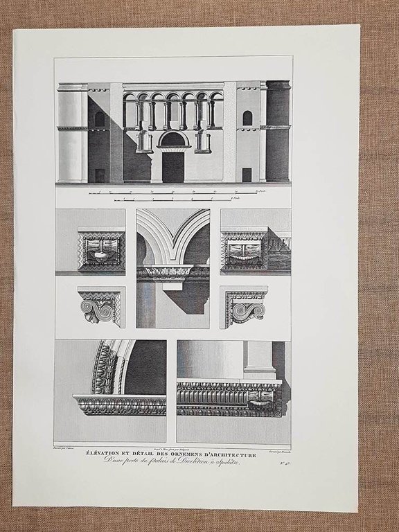 Prospetto ed ornamenti Tempio di Diocleziano Spalato Croazia Anno 1802 Ristampa Rara tavola estratta da pubblicazione del 1974 Stampata su carta pregiata e non retroscritta Prospetto ed ornamenti del Tempio di Diocleziano Spalato Croazia Codice prodotto: Litografie - 1981 Ristampa anastatica di una celebre tavola del 1802 contenuta nella rara e pregiata opera Voyage pittoresque et historique de l'Istrie et Dalmatie redige d'apres l'itineraire de L. F. Cassas par Joseph Lavallee Pubbicata in Francia nel 1802 Dimensioni: Cm 35,00 x 50,00