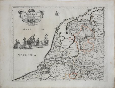 Carta geografica tratta dal ' Mercurio geografico overo Guida Geografica in tutte le parti del Mondo conforme le Tavole Geografiche del Sansone Baudran de Cantelli Data in luce con direttione, e cura di Gio. Giacomo de Rossi nella sua stamperia ' raccolta di carte edita a Roma tra il 1660 ed il 1730 dalla tipografia De Rossi ' - la datazione delle carte va dal 1669 al 1715 - la cui prima stesura si deve a Giovanni Giacomo de Rossi. Nel corso degli anni l’atlante fu arricchito da un numero sempre maggiore di carte nelle successive edizioni curate prima da Domenico de Rossi e poi dal figlio Filippo. Il ' Mercurio Geografico ' è una raccolta che raccoglie lavori di cartografi quali Michele Antonio Baudrand, Nicolas Sanson, Augustin Lubin, Filippo Titi, Giacomo Ameti, Giovanni Antonio Magini e Innocenzo Mattei e che ' contempla come "corpus" principale ' la grande produzione del geografo Giacomo Cantelli da Vignola. Le carte sono finemente copiate ed intagliate dai maggiori incisori dell'epoca tra i quali Falda, Widman, Barbey, Widman, Lhuillier, Donia, Mariotti. ' La carta deriva dall’opera di Nicola Sanson. A differenza delle precedenti mappe olandesi, quella di Sanson si concentra sulle informazioni geografiche e idrografiche, tralasciando completamente ogni aspetto decorativo. Sanson, il più famoso cartografo francese della storia moderna, fu cosmografo al servizio di Luigi XIV, re di Francia; dotò le sue mappe delle più recenti informazioni geografiche e delle incisioni più belle e acute del periodo. Il ' Cartes Generales de Toutes les Parties du Monde ' rappresenta il più importante prodotto della cartografia commerciale francese del diciassettesimo secolo. Incisione in rame, in buono stato di conservazione. Bibliografia cfr. R. Almagià, ' Studi storici di cartografia napoletana, in “Archivio storico per le province napoletane”, 38 (1913), p. 645; A. Bonazzi, ' Il Mercurio geografico: il gioco e la differenza, in “Giacomo Cantelli: geografo del Serenissimo”, Bologna, 1995, p. 37-44 e 150-152; Bagrow ' 268; ' Phillips ' I 254-255; Shirley BL I, pp. 868-874. Map taken from ' Mercurio geografico overo Guida Geografica in tutte le parti del Mondo conforme le Tavole Geografiche del Sansone Baudran de Cantelli Data in luce con direttione, e cura di Gio. ' Giacomo de Rossi nella sua stamperia ' collection of maps published in Rome between 1660 and 1730 by the typography De Rossi - the date of the maps goes from 1669 to 1715 - whose first edition is due to Giovanni Giacomo de Rossi. Over the years the atlas was enriched by an increasing number of maps in subsequent editions edited first by Domenico de Rossi and then by his son Filippo. The ' Mercurio Geografico ' is a collection that brings together works by cartographers such as Michele Antonio Baudrand, Nicolas Sanson, Augustin Lubin, Filippo Titi, Giacomo Ameti, Giovanni Antonio Magini and Innocenzo Mattei, and which includes as its main "corpus" the great production of the geographer Giacomo Cantelli da Vignola. The maps are finely copied and engraved by the major engravers of the time including Falda, Widman, Barbey, Widman, Lhuillier, Donia, Mariotti. ' The map is derived from the work of Nicola Sanson. Unlike the previous Dutch maps, Sanson focuses on geographical and hydrographic information, completely omitting any decorative aspect. Sanson, the most famous French cartographer of modern history, was a cosmographer in the service of Louis XIV, King of France; he equipped his maps with the latest geographical information and the most beautiful and acute engravings of the period. The Cartes Generales de Toutes les Parties du Monde represents the most important product of seventeenth-century French commercial cartography. Copper engraving, in good condition. Literature cfr. R. Almagià, ' Studi storici di cartografia napoletana, in “Archivio storico per le province napoletane”, 38 (1913), p. 645; A. Bonazzi, ' Il Mercurio geografico: il gioco e la differenza, in “Giacomo Cantelli: geografo del Serenissimo”, Bologna, 1995, p. 37-44 e 150-152; Bagrow ' 268; ' Phillips ' I 254-255; Shirley BL I, pp. 868-874. Cfr.