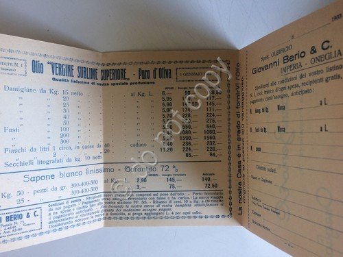 Pubblicità - Oleificio Berio & C. - Olio d'Oliva - Oneglia - Imperia - 1933