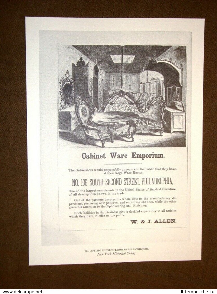 Stampa estratta da pubblicazione di metà '900 Pubblicità Cabinet Ware Emporium Mobiliere New York Historical Society Arte popolare americana U.S.A. STAPO - 024 Dimensioni Cm 19,00 x 26,00 Qualora vogliate delle scansioni migliori contattateci, soddisferemo ogni vostra richiesta. Paypal Carta di credito Bonifico bancario Accuratamente adagiate su un cartoncino e protette da pellicola trasparente rigida, il tutto viene inserito dentro plico di adeguate dimensioni per proteggerne l'integrità.