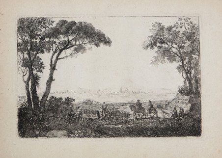Tavola tratta dalla ' Raccolta di alcune delle più belle vedute d'Italia con brevi annotazioni dell'Abate R. Venuti Presidente delle Antichità di Roma e Socio delle Accademie Reali d'Inghilterra, intagliate da vari celebri incisori. Roma 1761, una rara raccolta di vedute iniziate ed eseguite da James Forrester (Dublino, 1729 - Roma, 1775) su disegno di Peter Stephens membri della nutrita, interessante colonia di artisti anglosassoni presente a Roma nel XVIII secolo (Bryan: "James Forrester resided several years in Italy where he etched several plates of landscapes, which are executed in a neat and pleasing style"; Bénézit, XII, p. 229: "S. P. Dessinateur amateur. A publié en 1761 à Londres un Album de quelques vues d'Italie.").La committenza dell'opera si deve all'Abate Ridolfino Venuti (Cortona, 1705 - Roma, 1763), uno dei maggiori archeologi del sec. XVIII, autore della celebre ' Descrizione topografica delle antichità di Roma, membro della Royal Society di Londra, e con i fratelli Niccolò e Filippo, archeologi anch'essi, fondatore della celebre Accademia Etrusca di Cortona. La raccolta venne integrata e ristampata nel 1767; alcune delle 150 tavole di questo volume sono firmate da "Nicole" (Claude François Nicole I, 1700-1783) molte altre sono firmate da James Forrester, un paio sono firmate da George Dance, Christopher Norton o James Roberts. La maggior parte degli altri è contrassegnata da un particolare monogramma che sembra "WR" o "WR D.", presumibilmente riferito a un altro disegnatore. Molte hanno titoli e numeri di lastra incisi; i numeri doppi indicano un gruppo di Nicole e un altro di Forrester. La maggior parte delle tavole, tuttavia, non è firmata né da Nicole né da Forrester ed è di qualità nettamente inferiore. Si tratta presumibilmente di opere di un dilettante che non è ancora stato identificato. Incisione in rame, in ottimo stato di conservazione. Molto rara. View, from Raccolta di alcune delle più Belle vedute d'Italia con brevi annotazioni dell'Abate R. Venuti, published in Rome in 1761. Copperplate, in excellent condition. Very rare. Cfr. Cremonini pag. 113, 67.