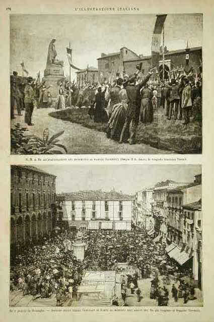 Due vignette in unico foglio raffiguranti l'arrivo del Re. Testo al verso
