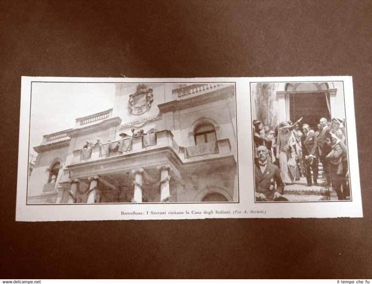 Rara stampa Estratta da Rivista d'epoca del 1924 . .stampa che ha quindi oltre 92 anni! Viaggio Re Vittorio Emanuele III di Savoia e Elena del Montenegro in Spagna nel 1924 Barcellona I Sovrani visitano la Casa degli Italiani II1924-030 Dimensioni Cm 25,00 x 11,00 Qualora vogliate delle scansioni migliori contattateci, soddisferemo ogni vostra richiesta. PaypalCarta di creditoBonifico bancario Accuratamente adagiate su un cartoncino e protette da pellicola trasparente rigida,il tutto viene inserito dentro plico di adeguate dimensioni per proteggerne l'integrità.