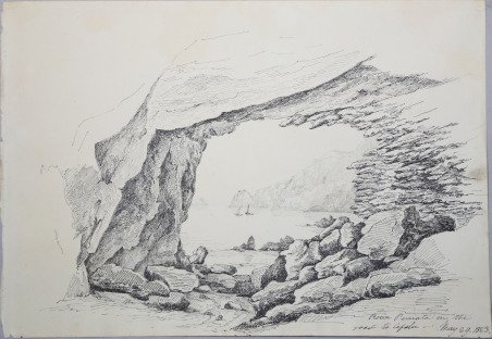 Disegno a china e matita, tratto da un taccuino di viaggio dell'artista e mecenate inglese. Edward Cheney di Badger è il nome più rilevante di una nobile famiglia inglese di scultori ed appassionati d'arte. Il suo nome è presente nelle biografie di molti artisti del XIX secolo, dei quali fu un generoso patrono. Egli acquistò centinaia di dipinti provenienti dall'Italia, specialmente da Venezia, verso il secondo quarto del diciannovesimo secolo. A sua volta, assieme al fratello Robert Henry, e alla loro madre e sorella, si dedicarono con successo al disegno e all'acquarello, arte che misero abilmente in pratica durante il loro lungo soggiorno nella penisola. La loro collezione di disegni ed acquarelli rappresenta la più grande e vasta connessione tra l'Italia e l'Inghilterra durante il periodo del Gran Tour. ' La collezione Cheney era situata a S. Audley, in Londra e successivamente spostata nel 1860 a Badger Hall. Alla morte di Edward (1884) fu ereditata dal cognato Afred Capel-Cure che, immediatamente, ne mise in vendita una grande parte; i dipinti finirono in asta da Christie’s, mentre i disegni e le incisioni da Sotheby’s. Il resto della prestigiosa raccolta finì nelle mani di Francis Capel-Cure, che la mise in vendita da Sotheby's il 6 maggio 1905 disperdendo, così, definitivamente la più importante collezione di opere del Grand Tour. Pencil and ink drawing, in good condition. ' Edward Cheney was the second son of General Robert Cheney of Badger Hall, Shropshire. He acquired many paintings in Italy, especially Venice, around the second quarter of the 19th century, and inherited some from his brother, R. Henry Cheney [d. 1866], as well. Cheney's collection of drawings and paintings was in S. Audley St., London, but it was moved to Badger Hall in 1860. Sources say that at Cheney's death, the collection passed to his brother-in-law, Alfred Capel-Cure, who immediately sold a large portion of the paintings at Christie's, and the prints and drawings at Sotheby's. At the death of Col. Alfred Capel-Cure, the remainder of the collection went to his nephew, Francis Capel-Cure, who sold some of it in London on 6 May 1905. Cfr.