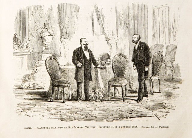 Roma.- Gambetta ricevuto da Sua Maestà Vittorio Emanuele II, il 4 gennaio 1878