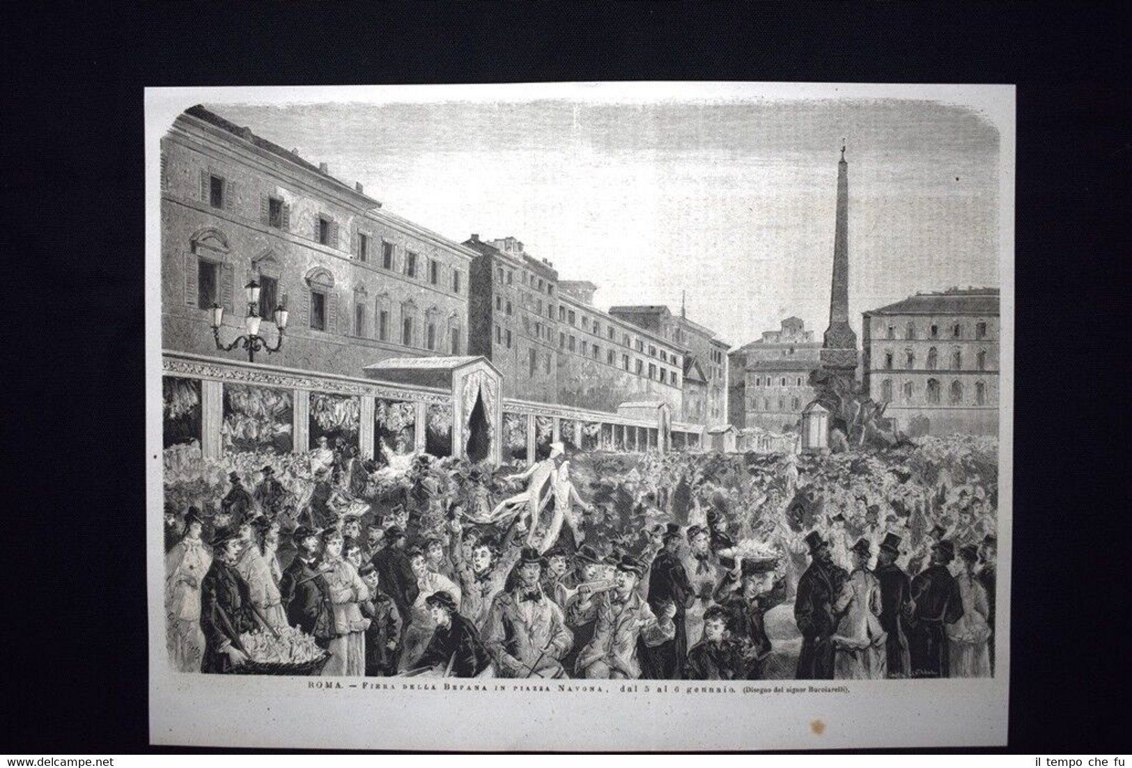 Roma-Fiera della Befana in Piazza Navona, dal 5 al 6 gennaio Incisione del 1876 | Stampe |