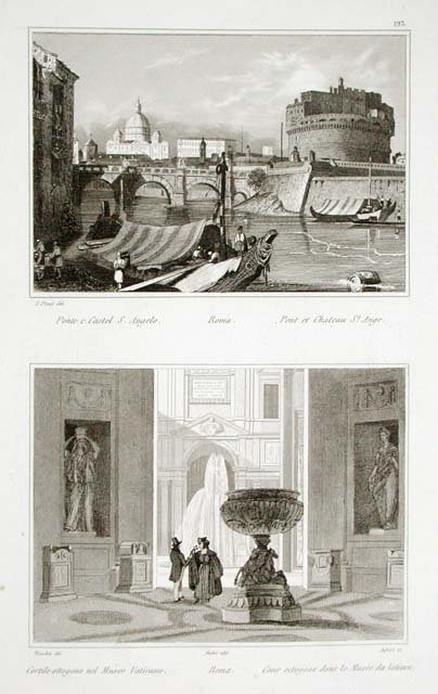 Roma. Ponte e Castel S. Angelo - Cortile ottogono nel Museo Vaticano | Stampe | Audot edit., Audot edit.