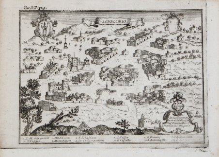 Veduta della città di S. Gregorio (Salerno), tratta da Il Regno di Napoli in prospettiva diviso in dodeci provincie, in cui si descrivono la sua metropoli fidelissima città di Napoli… Opera postuma divisa in tre parti dell'abate Gio. Battista Pacichelli parte prima [terza]. - In Napoli: nella stamperia di Michele Luigi Mutio, 1700 - 1703. Questa monumentale opera dell'abate Pacichelli si propone di raccontare la storia politico-militare, religiosa, urbanistica, economica ed artistica di 148 città e degli annessi territori, nelle 12 provincie costituenti quello che fu un tempo il Regno di Napoli. Di ogni singolo comune vengono narrate le origini, la situazione economica, le vicende storiche, la topografia e i monumenti, le opere letterarie, i culti e le reliquie dei Santi venerati. Valore aggiunto e parte integrante dei volumi di Pacichelli sono le nitide incisioni che ritraggono tutti i centri del regno napoletano realizzate da Michele Luigi Muzio e le carte geografiche opera di Francesco Cassiano De Silva. L'opera fu consegnata agli editori nel 1692, ma andò in stampa solo dopo la morte di Pacichelli (1695). ' Incisione in rame, leggera gora di umidità, nel complesso in ottimo stato di conservazione. Rara. View of the city taken from Il Regno di Napoli in prospettiva diviso in dodeci provincie, in cui si descrivono la sua metropoli fidelissima città di Napoli. Opera postuma divisa in tre parti dell'abate Gio. Battista Pacichelli parte prima [terza . - In Naples: in the printing house of Michele Luigi Mutio, 1700-1703. This monumental work by Abbot Pacichelli sets out to recount the political-military, religious, urban, economic and artistic history of 148 cities and their annexed territories, in the 12 provinces that made up what was once the Kingdom of Naples. The origins, economic situation, historical events, topography and monuments, literary works, cults and relics of the saints venerated are described for each individual municipality. An added value and an integral part of Pacichelli's volumes are the sharp engravings depicting all the centres of the Neapolitan kingdom by Michele Luigi Muzio and the maps by Francesco Cassiano De Silva. The work was delivered to the publishers in 1692, but only went into print after Pacichelli's death (1695). ' Copperplate, slight humidity marks, overall in excellent condition. Rare. Cfr. Cremonini pag.201/202, 121,122; Olscki, "Choix", 1108, "Ouvrage monumental qui conservera toujours une grande valeur ". Menichelli, 846. Fossati-Bellani, I, 522.
