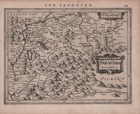 Mappa in miniatura tratta dall’Atlas minor, Das ist: Eine kurtze, jedoch gründliche Beschreibung der gantzen Weldt. ' Incisa da Abraham Goos o Pieter van den Keere, venne pubblicata per la prima volta da Johannes Janssonius nel 1628. L'Atlas Minor ' di Gerard Mercator fu concepito da Jodocus Hondius nel 1607 come edizione ridotta del popolare ' Atlas ' di Mercator in folio. L'Atlas Minor ' doveva essere più grande di un atlante tascabile, ma più piccolo di un atlante in folio, e aveva un prezzo adeguato a raggiungere una diversa clientela. Ci furono tre diverse edizioni dell'Atlas Minor ' pubblicate da autori diversi, ognuna con una nuova serie di mappe incise in rame. Jodocus Hondius pubblicò la prima edizione tra il 1607 e il 1621, e successivamente vendette le tavole in rame ad editori inglesi; tra il 1635-39 fu pubblicata un'edizione inglese dell’opera utilizzando molte delle tavole originali. Johannes Janssonius volle competere anche nel mercato dei “piccoli” atlanti e fece incidere nuove lastre di rame da Pieter van den Keere e Abraham Goos per la propria edizione dell’Atlas Minor, pubblicata in più lingue tra il 1628 e il 1651 La terza e ultima versione fu pubblicata da Jan Evertsz. Cloppenburch (o Cloppenburg) tra il 1630 e il 1734, con nuove mappe incise principalmente sempre da Pieter van den Keere. "Shortly after the publication of the big folio-atlases the need was apparantly felt for a smaller-sized atlas, one that would be handier, and, above all, cheaper, so that a larger public might have access to the use of maps. The publication of the ' Atlas Minor ' appeared to be a great success for Hondius; the first Latin edition was in great demand. The copperplates of the first atlases minor were most almost certainly engraved by Jodocus Hondius himself. After 1621, the copperplates of the ' Atlas Minor ' were sold to a London editor. Firstly, they appeared in ' Purchas his Pilgrinies, printed in 1625 by William Stansby for Henry Featherstone. Next they were used for the translation of the Mercator-atlas, printed in small folio under the title ' Historia mundi, or Mercators atlas, ' by Thomas Cotes for Michael Sparke and Samuel Cartwight in 1635". (cf. Koeman II Me 191). "As with the ' Theatrum ' of Abraham Ortelius, Jodocus Hondius planned a reduced size version of Gerard Mercator's folio atlas. Just one year after his first edition he published his Latin text ' Atlas Minor ' in collaboration with Jan Jansz. and Cormelis Claesz. The arrangement between these three is not understood clearly but Hondius is believed to have been the owner of the copperplates. Cartographically this is taken directly from the folio maps by Hondius in 1606 [.]. with the inevitable loss of detail due to the reduction” (cf. Burden, ' The Mapping of North America, 153). ' Johannes Janssonius (1588-1664) era figlio di un omonimo tipografo, editore e libraio di Arnhem. Nel 1612 sposò Elisabetta Hondius, figlia di Jodocus Hondius I, e nello stesso anno fondò una propria casa editrice ad Amsterdam. Alla morte di Jodocus I, nello stesso anno, iniziò ad aiutare la vedova di Hondius a continuare la pubblicazione dell'atlante di Mercatore e Hondius. Sia la vedova di Hondius, Colette, sia il figlio maggiore di Hondius, Jodocus II, morirono nel 1629; Janssonius unì quindi le forze con il figlio minore di Hondius, Henricus, per una revisione dell'Atlas Novus, a partire dal 1638. Acquaforte, in ottimo stato di conservazione. Dall’edizione tedesca dell’Atlas Minor, stampata ad Amsterdam nel 1648. Bibliografia Koeman IIIB, 352:33. A miniature map taken from ' Atlas minor, Das ist: Eine kurtze, jedoch gründliche Beschreibung der gantzen Weldt. ' Engraved by Abraham Goos or Pieter van den Keere, first issued by Johannes Janssonius in 1628. Mercator's ' Atlas Minor ' was conceived by Jodocus Hondius in 1607 as a reduced-sized edition of the popular folio-sized Mercator Atlas. The ' Atlas Minor ' was intended to be larger than a pocket atlas, yet smaller than the folio atlas, and were priced accordingly to reach a new market. There were three different editions of the ' Atlas Minor ' published by different authors, each with a new set of copperplates. Jodocus Hondius published the first edition from 1607-1621, and subsequently sold the copperplates to parties in England between 1621-1625, after which an English edition was published using many of the original plates in 1635-39. Johannes Jansson wanted to compete in the small atlas market as well, and had new copperplates engraved by Pieter van den Keere and Abraham Goos for his own edition published in multiple languages between 1628-51. The third and final edition was published by Jan Evertsz. Cloppenburch (or Cloppenburg) between 1630-1734 (some without text), with new maps engraved primarily by Pieter van den Keere. "Shortly after the publication of the big folio-atlases the need was apparantly felt for a smaller-sized atlas, one that would be handier, and, above all, cheaper, so that a larger public might have access to the use of maps. The publication of the ' Atlas Minor ' appeared to be a great success for Hondius; the first Latin edition was in great demand. The copperplates of the first atlases minor were most almost certainly engraved by Jodocus Hondius himself. After 1621, the copperplates of the ' Atlas Minor ' were sold to a London editor. Firstly, they appeared in ' Purchas his Pilgrinies, printed in 1625 by William Stansby for Henry Featherstone. Next they were used for the translation of the Mercator-atlas, printed in small folio under the title ' Historia mundi, or Mercators atlas, ' by Thomas Cotes for Michael Sparke and Samuel Cartwight in 1635". (cf. Koeman II Me 191). "As with the ' Theatrum ' of Abraham Ortelius, Jodocus Hondius planned a reduced size version of Gerard Mercator's folio atlas. Just one year after his first edition he published his Latin text ' Atlas Minor ' in collaboration with Jan Jansz. and Cormelis Claesz
