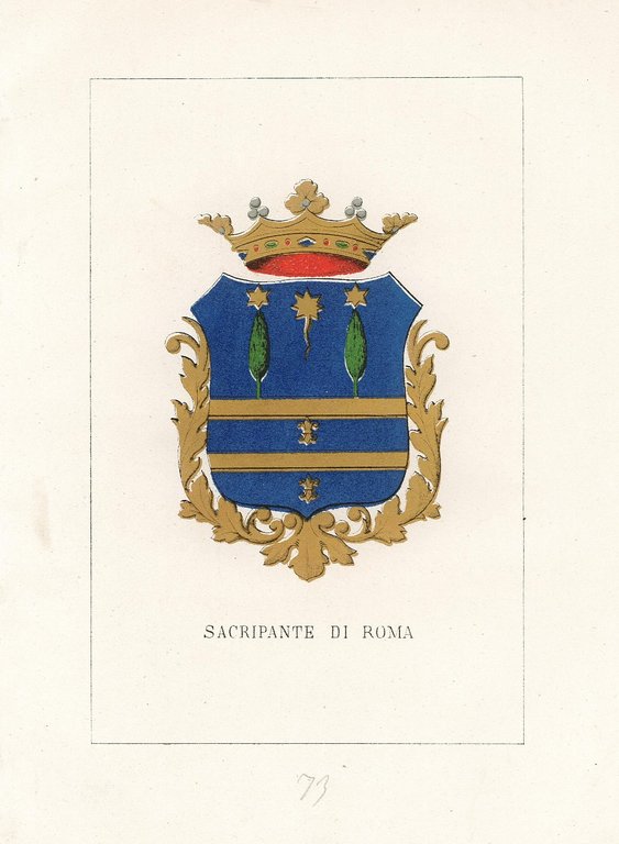 Stemma araldico della famiglia, la stampa è accompagnata da pagine con testo storico descrittivo
