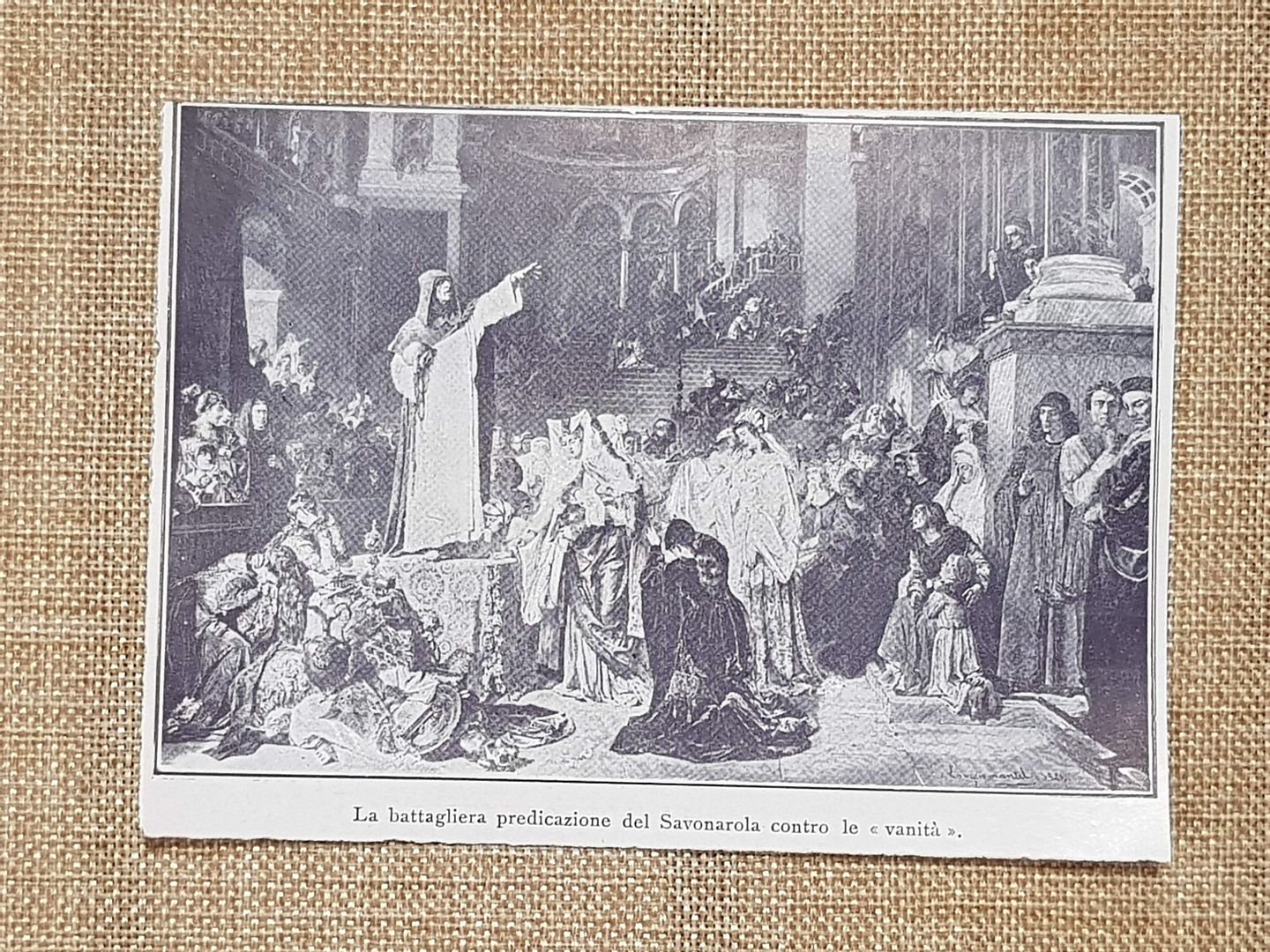 Savonarola predica contro la vanità Autore da identificare Stampa del 1931 Rara stampa estratta da pubblicazione del 1931 Il Savonarola che predica contro la vanità Autore da identificare Codice prodotto: S.I. - 057 Dimensioni: Cm 12,00 x 9,00