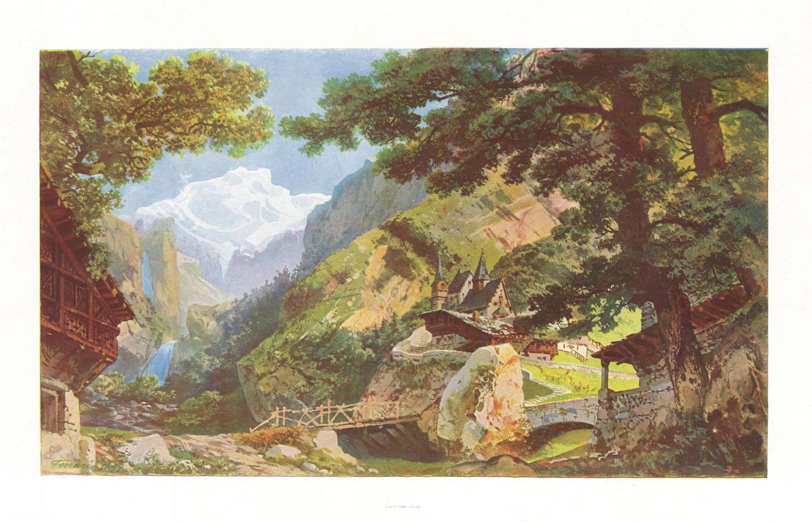 Stampa, antica ed originale, di un paesaggio delle Alpi italiane
