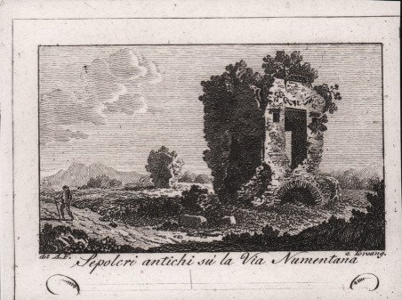Veduta tratta dalla celebre Raccolta di num. 320 Vedute sì antiche, che moderne della città di Roma. …Incise a bulino in N. 80 rami, In Roma Nella Calcografia di Agapito Franzetti a Torsanguigna Col Permesso. ' L’opera si compone di un frontespizio calcografico e di 80 tavole numerate, ognuna composta da quattro vedute. Viene stampata senza data; molti repertori la datano intorno al 1790 circa, forse perché stampata su carta vergata. Una datazione intorno al 1800 ci sembra tuttavia più plausibile. ' Agapito Franzetti, calcografo attivo a Roma con bottega tra via del Corso e Torsanguigna, è noto per le sue piccole incisioni di veduta che servivano spesso come biglietti da visita. Tutte contengono, infatti, una linea in basso, dove si poteva apporre il proprio nome ad inchiostro. Come indicato nel titolo, le vedute raffigurano sia monumenti e antiche rovine che vedute “moderne”, con piazze, chiese e ville. Ciascuna tavola reca, in basso al centro, il nome dell’incisore. Gli artisti coinvolti sono sei: Jean-Jerome Baugean; Antonio Giuseppe Barbazza; Giovanni Battista Cipriani; Francesco Morelli; Antonio Poretta e Domenico Pronti. Molte delle vedute derivano dalla celebre opera di Giuseppe Vasi, Delle magnificenze di Roma antica e moderna. Pubblicata in 10 volumi dal 1747 al 1761, l’opera presenta 238 incisioni in rame, ciascuna incisione con testo narrativo che fornisce informazioni storiche e documentarie. ' Acquaforte, in buono stato di conservazione. ' Bibliografia: A. Bertarelli, H. Prior, Il biglietto da visita italiano. Contributo alla storia del costume e dell'incisione nel secolo XVII, Bergamo 1911, p. 162. View of the city printed in Rome by the publisher Agapito Franzetti. Taken from Raccolta di num. 320 Vedute sì antiche, che moderne della città di Roma. …Incise a bulino in N. 80 rami, In Roma Nella Calcografia di Agapito Franzetti a Torsanguigna Col Permesso. ' The work consists of an intaglio frontispiece and 80 numbered plates, each consisting of four views. It is printed without date; many repertories date it around 1790, perhaps because it was printed on laid paper. A date around 1800 seems more plausible. Franzetti, a chalcographer working in Rome with a workshop between Via del Corso and Torsanguigna, is known for his small engravings of views that were often used as business cards. They all contain a line at the bottom where one's name could be written in ink. The small views were often printed four to a sheet. As indicated in the title, the views depict both monuments and ancient ruins and "modern" views, with squares, churches and villas. Each table bears, at the bottom center, the name of the engraver. There are six artists involved: Jean-Jerome Baugean; Antonio Giuseppe Barbazza; Giovanni Battista Cipriani; Francesco Morelli; Antonio Poretta and Domenico Pronti. ' The views are made after Giuseppe Vasi’s monumental work Delle magnificenze di Roma antica e moderna. Published in 10 volumes from 1747 to 1761, the work features 238 copper engravings, each engraving with a narrative text that provides historical and documentary information. ' Bibliografia: A. Bertarelli, H. Prior, Il biglietto da visita italiano. Contributo alla storia del costume e dell'incisione nel secolo XVII, Bergamo 1911, p. 162. Cfr.
