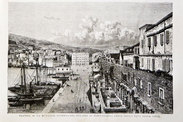 Spalato.- La muraglia esterna del palazzo di Diocleziano, presa dalla riva della città