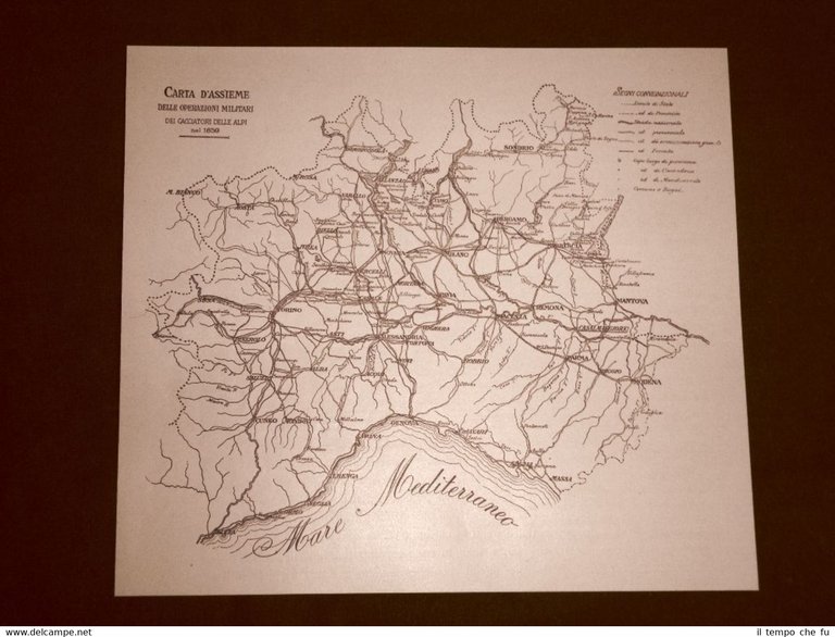 Rara stampa Estratta da Rivista d'epoca del 1892 . .stampa che ha quindi oltre 123 anni! Carta d'assieme Operazioni militari dei Cacciatori delle Alpi di Garibaldi nel 1859 GRBLD-072 Dimensioni Cm 22,00 x 19,00 Qualora vogliate delle scansioni migliori contattateci, soddisferemo ogni vostra richiesta. PaypalCarta di creditoBonifico bancario Accuratamente adagiate su un cartoncino e protette da pellicola trasparente rigida,il tutto viene inserito dentro plico di adeguate dimensioni per proteggerne l'integrità.