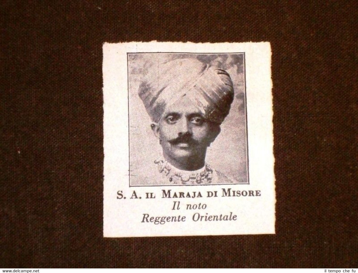 Rara Stampa Estratta da Rivista d'epoca del 1931 Sua Altezza il Maraja di Misore nel 1931 Reggente d'Oriente II1931-015T Dimensioni Cm 4,50 x 5,00 Qualora vogliate delle scansioni migliori contattateci, soddisferemo ogni vostra richiesta. Paypal Carta di credito Bonifico bancario Accuratamente adagiate su un cartoncino e protette da pellicola trasparente rigida il tutto viene inserito dentro plico di adeguate dimensioni per proteggerne l'integrità