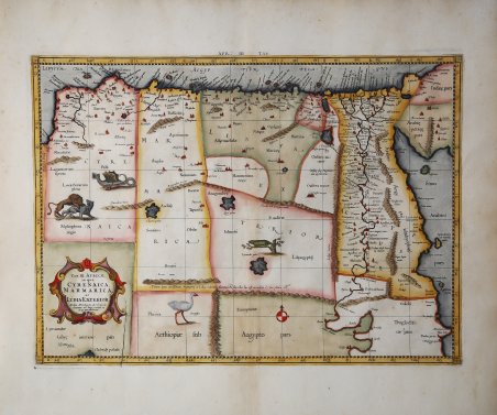 Mappa tolemaica del Nord Africa, raffigurata dal Marocco al Mar Rosso, inclusa una mappa quasi completa del Nilo in Egitto. Molti nomi di luoghi antichi sono inclusi in tutta la mappa. L'interno è impreziosito da animali e un feroce drago nell'attuale Marocco. Originalmente preparata per illustrare il ' Cl. Ptolemaei Alexandrini, Geographiae Libri Octo, ' pubblicato prima a Colonia da Gottfried von Kempen (1578), ristampato dallo stesso editore nel 1584 (Van der Krogt 1, 502) e poi da Isaac Elsevier per il ' Theatrum Geographiae veteris ' di Petrus Bertius (Leyden 1618). Di tutte le edizioni di Tolomeo, quella di Gerard Kremer (Mercatore), pubblicata nel 1578, e forse tecnicamente la più bella. A questo punto la ' Geografia ' di Tolomeo perdeva pero ogni pretesa di “attualità”, laddove lo scopo di Mercatore era quello di produrre un atlante del mondo classico che servisse da complemento al suo atlante moderno (per tale ragione egli aveva tentato di recuperare la forma originale dell’atlante tolemaico, scartandone le moderne accrezioni). L’opera è celebre anche per la sua longevità, poiché le lastre originali risultavano ancora in uso nel 1730, oltre centocinquanta anni dopo la loro incisione. Esemplare tratto dalla ' Tabulae geographicae Cl: Ptolemei ' di François Halma, stampata tra Utrecht, Amsterdam e Leida nel 1695, 1698, 1704 (2 tirature) e 1730. Le lastre sono emendate e i cartigli completamenti cambiati; più piccoli e realizzati sopra i precedenti – abrasi – lasciando ampie aree bianche sulla stampa. Acquaforte, finemente colorata a mano, in buone condizioni. Ptolemaic map of Northern Africa, depicted from Morocco to the Red Sea, including almost a complete map of the Nile in Egypt. Many ancient place names are included throughout the map. The interior is embellished with animals, and a fierce dragon in present-day Morocco. Conceived for the ' Cl. Ptolemaei Alexandrini, Geographiae Libri Octo, ' first published in Cologne by Gottfried von Kempen (1578) and then reprinted by the same publisher in 1584 (Van der Krogt 1, 502) and then by Isaac Elsevier for the Petrus Bertius’ ' Theatrum Geographiae veteris ' (Leyden 1618). Mercator's interpretation of the 28 Ptolemaic text was possibly one of the truest undertaken up until that time. He had spent 13 years researching, drawing and engraving the maps at much commercial sacrifice to himself, having seen Ortelius's ' Theatrum ' and De Jodes ' Speculum ' published, to become both technical and commercial successes. In later life he devoted himself to his edition of the maps in Ptolemy's ' Geographia, reproduced in his own engraving as nearly as possible in their original form. The work is also famous for its longevity, since the original plates were still in use in 1730, over one hundred and fifty years after their engraving. Example taken from the ' Tabulae geographicae Cl: Ptolemei ' by François Halma, printed between Utrecht, Amsterdam and Leiden in 1695, 1698, 1704 (2 printings) and 1730. The plates are amended and the cartouches completely changed; smaller and made over the previous ones - erased - leaving large white areas on the print. Copperplate with fine later hand colour, good condition. Cfr.