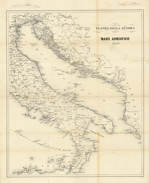 Carta geografica dell'Adriatico ed italia meridionale. Pieghe editoriali, restauri