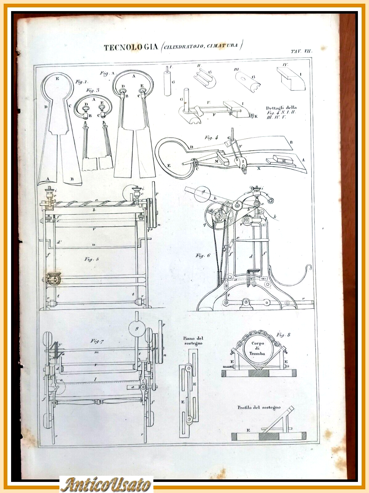 Tecnologia CILINDRATOJO CIMATURA Tavola Incisione Stampa Antica 1866