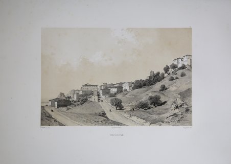 Rara litografia tinta disegnata “d'apres nature” da Frederic Bourgeois de Mercey, litografata da Eugene Ciceri e stampata dall’editore Lemercier a Parigi. Venne pubblicata nella raccolta ' La Toscana e le Midi d’Italie. ' Notes de voyages, étude et recit, ' impressa nel 1858. Frédéric Bourgeois de Mercey, nasce il 20 maggio 1803 a Parigi e muore il 6 settembre 1860 al castello di La Faloise. Fu un pittore, scrittore di viaggi, critico d'arte e romanziere francese. Nasce a Parigi da Louis-Frédéric, vissuto nel regno di Napoli al servizio Gioacchino Murat. Ritornato in Francia alla fine del Decennio, il padre del nostro scrittore si dedicò allo studio delle Belle Arti. Questo clima culturale orientò le scelte di Frédéric Bourgeois. Inizialmente si dedicò alla pittura specializzandosi nel paesaggio (sue vedute sono conservate nei grandi musei francesi); quindi fu chiamato al ministero dell’Interno come responsabile delle Belle Arti, fino a raggiungere il grado di ministro di Stato. Visitò lungamente la Penisola, in particolare la Toscana e il Mezzogiorno. Uomo politico di orientamento democratico, profondo conoscitore del mondo classico e medioevale italiano, pubblicò numerose opere. Si occupò della Costa in un articolo per la “Revue des Deux-Mondes” del 1840 ' La République d’Amalfi, riversato, successivamente, nel volume ' La Toscana e le Midi d’Italie. Notes de voyages, étude et recit ' (Parigi 1858), accompagnato da un album di litografie basate sui numerosi disegni che egli andava riprendendo nei suoi tour. Litografia tinta, in ottimo stato di conservazione. ' ' ' ' ' ' Rare tinted lithograph drawn "d'apres nature" by Frederic Bourgeois de Mercey, lithographed by Eugene Ciceri and printed by Lemercier in Paris. It was published in the collection ' La Toscana e le Midi d'Italie. ' Notes de voyages, étude et recit, ' published in 1858. Frédéric Bourgeois de Mercey, was born on May 20, 1803 in Paris and died on September 6, 1860 at La Faloise Castle. He was a French painter, travel writer, art critic and novelist. He was born in Paris to Louis-Frédéric, who lived in the kingdom of Naples in the service of Joachim Murat. Returning to France at the end of the Decade, our writer's father devoted himself to the study of the fine arts. This cultural climate directed Frédéric Bourgeois' choices. Initially he devoted himself to painting, specializing in landscape (his views are preserved in the great French museums); then he was called to the Ministry of the Interior as head of Fine Arts, until he reached the rank of minister of state. He visited the Peninsula at length, particularly Tuscany and the Mezzogiorno. A politician with a democratic orientation, a profound connoisseur of the classical and medieval Italian world, he published numerous works. He dealt with the Coast in an article for the 1840 "Revue des Deux-Mondes" La République d'Amalfi, poured, later, into the volume ' La Toscana e le Midi d'Italie. ' Notes de voyages, étude et recit ' (Paris 1858), accompanied by an album of lithographs based on the many drawings he was taking on his tours. ' ' ' ' ' ' Tinted lithograph, very good condition. Cfr.