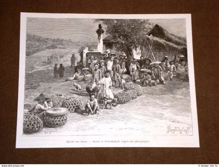 Rara Incisione Estratta da Rivista d'epoca del 1889 Tonkin o Tonchino en 1889 Marché aux chiens Vietnam TDM1889-024T Dimensioni Cm 17,00 x 14,00 Qualora vogliate delle scansioni migliori contattateci, soddisferemo ogni vostra richiesta. Paypal Carta di credito Bonifico bancario Accuratamente adagiate su un cartoncino e protette da pellicola trasparente rigida il tutto viene inserito dentro plico di adeguate dimensioni per proteggerne l'integrità