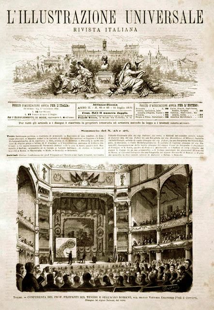 Torino.- Conferenza del prof. Filopanti sul Tevere e sull’Agro Romano, nel teatro Vittorio Emanuele