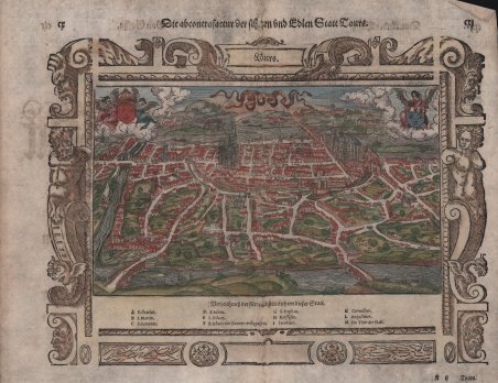 Tavola tratta dalla ' Cosmographiae Universalis, edizione in tedesco, Basilea, seconda metà del XVI secolo.La ' Cosmographiae Universalis ' di Sebastian Münster (1488-1552), stampata per la prima volta Basilea nel 1544 dall’editore Heinrich Petri, venne più volte aggiornata e aumentata di nuove carte geografiche e rappresentazioni urbane nelle sue numerose edizioni che arrivano all’inizio del secolo successivo. Münster aveva lavorato a raccogliere informazioni al fine di ottenere un'opera che non deludesse le aspettative e, dopo un'ulteriore pubblicazione in tedesco abbellita da 910 stampe su legno, giunse nel 1550 all'edizione definitiva in latino, illustrata da 970 silografie. Vi furono poi numerose edizioni in diverse lingue, fra cui latino, francese, italiano, inglese e ceco. Dopo la sua morte di Münster (1552), Heinrich Petri prima, e il figlio Sebastian poi, continuarono la pubblicazione dell’opera. La ' Cosmographia universalis ' fu uno dei libri più popolari e di successo del XVI secolo, e vide ben 24 edizioni in 100 anni: l'ultima edizione tedesca venne pubblicata nel 1628, molto tempo dopo la morte dell'autore. La ' Cosmographia ' conteneva non solo le ultime mappe e vedute di tutte le città più famose, ma anche una serie di notizie enciclopediche di dettagli relative al mondo conosciuto, e sconosciuto. Il particolare successo anche commerciale di quest'opera fu dovuto in parte alle belle incisioni (tra i cui autori si possono citate Hans Holbein il Giovane, Urs Graf, Hans Rudolph Manuel Deutsch, David Kandel). Silografia, bella coloritura a mano, in buone condizioni. Plate taken from the ' Cosmographiae Universalis, German edition, Basel, second half of the 16th Century. The ' Cosmographiae Universalis ' of Sebastian Münster (1488-1552), printed for the first time in Basel in 1544 by the publisher Heinrich Petri, was updated several times and increased with new maps and urban representations in its many editions until the beginning of the next century. Münster had worked to collect information in order to obtain a work that did not disappoint expectations and, after a further publication in German embellished with 910 woodblock prints, arrived in 1550 to the final edition in Latin, illustrated by 970 woodcuts. There were then numerous editions in different languages, including Latin, French, Italian, English and Czech. After his death in Münster (1552), Heinrich Petri first, and then his son Sebastian, continued the publication of the work. The ' Cosmographia universalis ' was one of the most popular and successful books of the 16th century, and saw as many as 24 editions in 100 years: the last German edition was published in 1628, long after the author's death. The ' Cosmographia ' contained not only the latest maps and views of all the most famous cities, but also a series of encyclopedic details related to the known, and unknown, world. The particular commercial success of this work was due in part to the beautiful engravings (among whose authors can be mentioned Hans Holbein the Younger, Urs Graf, Hans Rudolph Manuel Deutsch, David Kandel). Woodcut, beautiful hand-coloring, in good condition. Cfr.