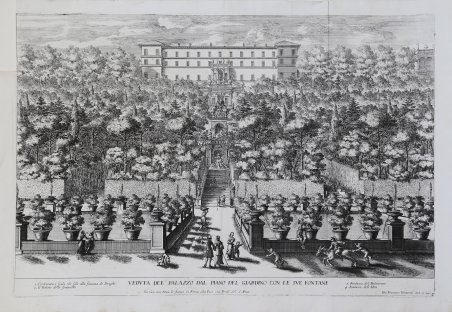 Veduta tratta dalla serie ' Le Fontane di Roma, 1680 circa. Iniziata da Giovan Battista Falda nel 1667 circa, la serie venne ultimata da Giovanni Francesco Venturini, che incise - da propri disegni - le due serie ' Le fontane del giardino estense in Tivoli ' e ' Le fontane ne' palazzi e ne' giardini di Roma con li loro prospetti et ornamenti, pubblicate dall'editore romano G. G. De Rossi (1684 circa) a completamento della celebre opera. Venturini fu incisore, nato a Roma nel 1650, morto dopo il 1710. Il suo nome è specialmente legato alle due serie di stampe, da lui disegnate e incise, ' Le fontane ne' ' palazzi e ne' giardini di Roma ' e ' Le fontane del giardino estense in Tivoli, ' con. ' veduta della cascata del fiume Aniene, pubblicate da Giovanni Giacomo De Rossi, circa il 1684, a completamento della celebre opera di G. B. Falda. Di sua invenzione sono le incisioni per l'opera sulle ' Chiocciole ' di Filippo Buonanni. Collaborò alla raccolta ' Insignium Romae templorum prospectus, e ad altre imprese dell'editoria calcografica del tempo. Incise anche da Polidoro da Caravaggio, dal Nasini, dal Domenichino (Caccia di Diana) e da altri. Acquaforte, con margini, in buono stato di conservazione. Bibliografia TIB ' The Illustrated Bartsch ' - Commentary Volumes. 1978–, cat. n. 47 pt. 2 Commentary pp. 4-29, .005-.055; pp. 41-42, .077-080. View taken from the series ' Le Fontane di Roma, ' 1680 approx. Begun by Giovan Battista Falda in about 1667, the series was completed by Giovanni Francesco Venturini, who engraved - from his own drawings - the two series ' Le fontane del giardino estense in Tivoli ' and ' Le fontane ne' palazzi e ne' giardini di Roma con li loro prospetti et ornamenti, published by the Roman publisher G. G. De Rossi (about 1684) to complete the famous work. Venturini was an engraver, born in Rome in 1650 and died after 1710. His name is especially linked to the two series of prints, drawn and engraved by him, ' Le fontane ne' palazzi e ne' giardini di Roma ' and ' Le ' fontane del giardino estense in Tivoli, con. view of the waterfall of the Aniene River, published by Giovanni Giacomo De Rossi, circa 1684, completing the celebrated work of G. B. Falda. Of his own invention are the engravings for the work on the ' Chiocciole ' by Filippo Buonanni. He collaborated on the collection ' Insignium Romae templorum prospectus, and other enterprises of intaglio publishing of the time. He also engraved by Polidoro da Caravaggio, Nasini, Domenichino (Hunting Diana) and others. Etching, with margins, in good condition. Bibliografia TIB ' The Illustrated Bartsch ' - Commentary Volumes. 1978–, cat. n. 47 pt. 2 Commentary pp. 4-29, .005-.055; pp. 41-42, .077-080. Cfr.