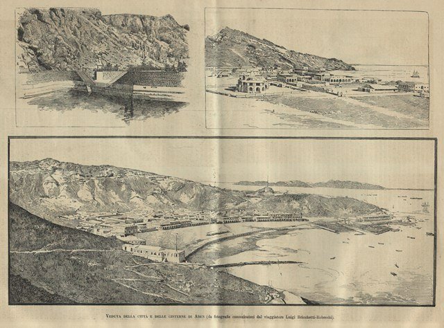 Veduta della città e delle cisterne di Aden