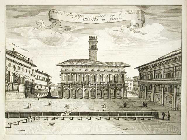 Veduta della Piazza maggiore con il Palazzo del Podestà in Faccia | Stampe | Blaeu Johan, Blaeu Johan