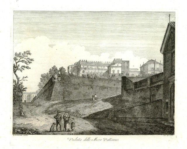 Particolare veduta delle Mura Vaticane, in primo piano viandanti