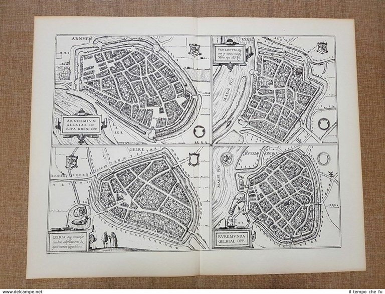 Vedute di Arnhem, Venlo, Geldern e Roermond Anno 1590 Braun e Hogenberg Ristampa