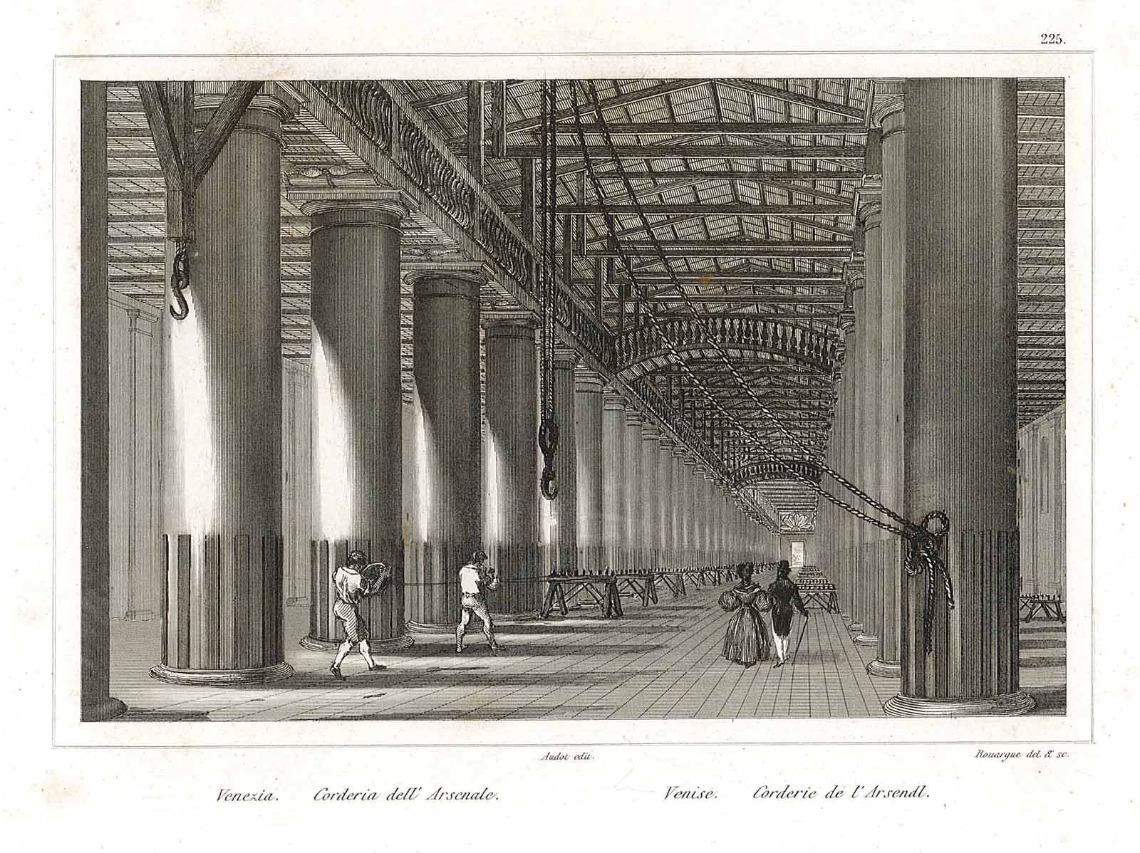 Stampa antica ed originale raffigurante la veduta interna dell'Arsenale