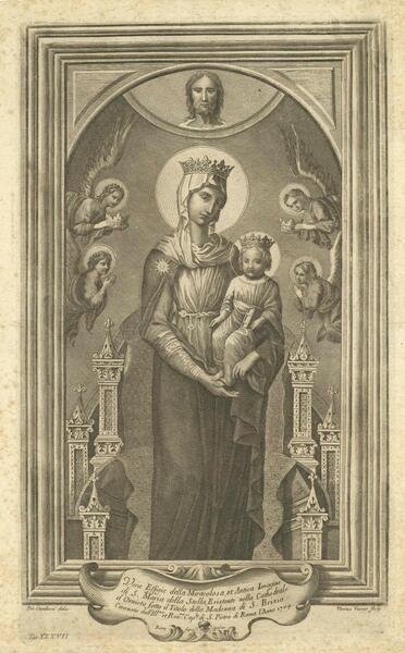 Vera Effigie della Miracolosa, et Antica Immagine di S.Maria della Stella Esistente nella Cathedrale d'Orvieto sotto il Titolo della Madonna di S. Brizio Coronata dall'Ill.mo et Rev.mo Cap.le di S. Pietro di Roma l'Anno 1704 | Stampe | Ubertus Vincent sculp. & Castellucci delin., Ubertus Vincent sculp. & Castellucci delin.