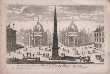 Veüe de la Place du Peuple en entrant dans la Ville de Rome