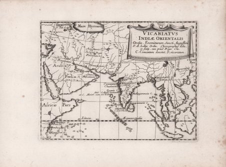 Carta geografica tratta dal rarissimo ' Orbis Augustinianus sive Conventuum Ordinis Eremitarum Sanctii Augustini Chorographica et Topographica Descriptio ' edito a Parigi nel 1659 e ristampato poi nel 1672.L’opera realizzata dal Lubin, è molto simile nella sua concezione, a quella realizzata per l’ordine dei Francescani nel 1649 e vuole rappresentare le province nelle quali è presente l’ordine degli Agostiniani, con l’ubicazione dei conventi. L'Ordine degli Eremitani di Sant'Agostino (in latino Ordo Eremitarum Sancti Augustini) è un istituto religioso che la tradizione fa risalire le origini a Sant'Agostino. Ufficialmente l'Ordine sorse nel 1244 dall'unione, promossa dal cardinale Riccardo Annibaldi e sancita da papa Innocenzo IV, delle fraternità di eremiti di Tuscia in un'unica famiglia religiosa sotto la guida di un priore generale e con la regola di Sant'Agostino. Nel 1256 agli eremitani di sant'Agostino vennero unite altre congregazioni. Incisione in rame, in perfetto stato di conservazione. Molto rara. Map taken from the very rare ' Orbis Augustinianus sive Conventuum Ordinis Eremitarum Sanctii Augustini Chorographica et Topographica Descriptio ' published in Paris in 1659 and later reprinted in 1672. The work made by Lubin, is very similar in its conception, to the one made for the Franciscan order in 1649 and is intended to represent the provinces in which the Augustinian order is present, with the location of the convents. The Order of the Hermits of St. Augustine (in Latin Ordo Eremitarum Sancti Augustini) is a religious institute that tradition traces its origins to St. Augustine. Officially, the Order arose in 1244 from the union, promoted by Cardinal Riccardo Annibaldi and sanctioned by Pope Innocent IV, of the fraternities of hermits of Tuscia into a single religious family under the leadership of a prior general and under the rule of St. Augustine. In 1256 the hermits of St. Augustine were joined by other congregations. Copperplate engraving, in perfect condition. Very rare. Cfr.