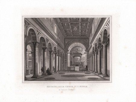 La tavola appartiene a una serie di acquatinte realizzate da Paolo Cacchiatelli e Gregorio Cleter, per divulgare le imprese artistiche, architettoniche, urbanistiche e scientifiche promosse da Pio IX. Le stampe in fascicoli vengono pubblicate con il titolo esplicativo ' Le Scienze e le Arti sotto il pontificato di Pio IX, con commento di diversi eruditi del tempo. Interessante e pregevole opera che rappresenta la precisa volontà di papa Pio IX, pontefice dal 1846 al 1870, di divulgare e promuovere la sua politica culturale caratterizzata da notevoli interventi urbanistici, architettonici e artistici. La serie nacque per essere diffusa mensilmente, a fascicoli, con la pubblicazione di due tavole al mese con relativo commento, ad un prezzo contenuto. Una recensione apparsa su un periodico romano dell'epoca esemplifica con chiarezza l'obiettivo del pontefice: “Lo scopo di quest’atlante si è di conservare memoria viva e parlante di tutti i benefici che il Pontificato di Pio IX ha recato alle scienze e alle arti nei suoi Stati”. A partire dagli anni '50 del XIX secolo, Roma ebbe inizio un frenetico susseguirsi di imprese volte al collegamento ferroviario di numerose località con la città, anche in seguito alla fusione delle diverse società, che detenevano la concessione dei diversi tronchi, nella Pio-Centrale. Una di questi nuovi collegamenti è la Roma-Civitavecchia (1859), che vede crescere il tratto della linea dalla Porta Portese fino alla nuova stazione centrale che era in progettazione Incisione in rame, in ottimo stato di conservazione. The plate belongs to a series of aquatints made by Paolo Cacchiatelli and Gregorio Cleter, to publicize the artistic, architectural, urban planning and scientific enterprises promoted by Pius IX. The prints were published with the explanatory title ' Le Scienze e le Arti sotto il pontificato di Pio IX ' (The Sciences and the Arts under the Pontificate of Pius IX), with commentary by various scholars of the time. Interesting and valuable work that represents the precise will of Pope Pius IX, pontiff from 1846 to 1870, to disseminate and promote his cultural policy characterized by significant urban, architectural and artistic interventions. The series was born to be distributed monthly, in dossiers, with the publication of two plates per month with relative commentary, at an affordable price. A review that appeared in a Roman periodical of the time clearly exemplifies the objective of the pontiff: "The purpose of this atlas is to preserve a living and speaking memory of all the benefits that the Pontificate of Pius IX has brought to the sciences and the arts in his States". Starting from the 1850s, Rome began a frenetic succession of enterprises aimed at connecting numerous localities with the city by rail, also as a result of the merger of the various companies, which held the concession of the various sections, in the Pio-Centrale. One of these new connections is the Rome-Civitavecchia (1859), which sees the growth of the stretch of the line from Porta Portese to the new central station that was being planned. Copper engraving, in excellent condition. Cfr.