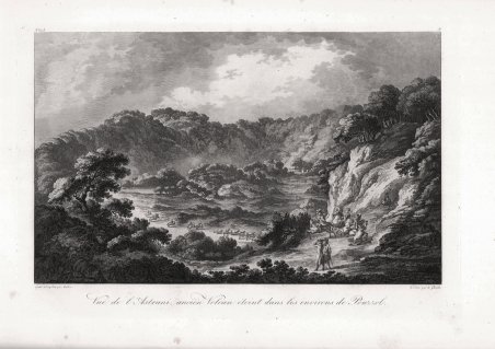 Veduta pubblicata nel ' Voyage Pittoresque ou description des Royaumes de Naples et de Sicile, opera in 5 volumi per la prima volta stampati a Parigi tra 1781 e il 1786. Richard de Saint-Non conobbe, durante il suo viaggio a Roma, i due già celebri pittori francesi Jean Honoré Fragonard e Hubert Robert, con i quali prosegue il suo viaggio per tutto il paese. Da questa grande amicizia nasce l’idea e la collaborazione per l’ambizioso progetto di documentare graficamente tutti i principali monumenti dell’Italia Meridionale e della Sicilia. Da qui, tra il 1781 ed il 1786, con l’aiuto di numerosi ed importanti architetti, pittori ed incisori, venne alla luce il Voyage Pittoresque ou description des Royaume de Naples et de Sicilie, opera composta di cinque volumi che uscirono annualmente. Incredibile sforzo tipografico, l’opera raccoglie quasi per intero gli appunti di viaggio del Saint-Non, adeguatamente assemblati e corretti; il corpus grafico è composto di ben 542 incisioni all’acquaforte e bulino, opera dei principali artisti di riproduzione del periodo. Da un punto di vista editoriale l’iniziativa riscuote immediatamente un grandissimo successo: il libro diviene un vero e proprio modello tipografico, sul quale sono basate diverse pubblicazioni dell’impero napoleonico. Dal punto di vista artistico le vedute, i paesaggi e le rovine conservano, e non può essere altrimenti, lo stile pittorico e romantico del Fragonard, del Robert, del Desprez, e di tutti gli altri artisti che collaborano nella realizzazione di questa monumentale opera. Il notevole successo commerciale della raccolta è testimoniato dalla ristampa, tra il 1795 ed il 1798, delle sole tavole pittoriche. Un’ulteriore edizione è stampata nel 1829 dal Dufour. Esemplare tratto dal ' Voyage Pittoresque, ' seconda edizione del 1795/98, priva dell’indicazione del privilegio reale. ' Acquaforte, stampata su carta vergata coeva, leggere ossidazioni, per il resto in ottimo stato di conservazione. View taken from the Voyage Pittoresque ou description des Royaume de Naples et de Sicilie by Richard de Saint-Non. During his trip to Rome, Richard de Saint-Non met two already famous French painters, Jean Honoré Fragonard and Hubert Robert, with whom he travelled along Italy. Their friendship led to the cooperation for the ambitious project of depicting all the main monuments of Southern Italy and Sicily. Between 1781 and 1786, with the assistance of many contemporary artists, he realized the Voyage Pittoresque ou description des Royaume de Naples et de Sicilie, a five volumes work published annually. As a result of a great typographical effort, the work is a collection of Sain-Non’s travelling notes; the graphic part is made up of 542 engravings and etchings, realized by the most important artists of the period. The work is immediately successful, for the book became a new typographical model for the following publications. From an artistic point of view, the views, landscapes and antiquity keep the Romantic pictorial style of Fragonard, Robert, Desprez and all the other artists that took part in this monumental project. The re-issue, between 1795 and 1798, of the pictorial plates, witnesses the great success of this project. A re-issue of the whole work was edited in 1829 by Dufour. ' Example taken from the second edition of the work, printed in Paris 1795/98; the plates are without the Royal priviledge. ' Etching, printed on contemporary laid paper, light foxing, otherwise good condition. Cfr.