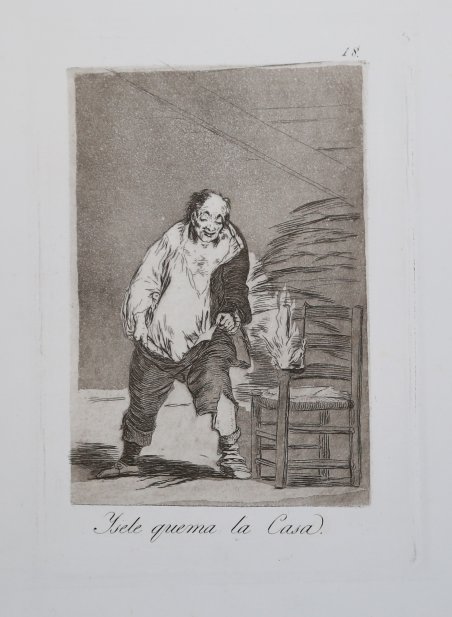 Opera tratta dai "Los Caprichos", per la prima volta pubblicati nel 1799. Prova della quarta edizione di dodici, stampata dalla calcografia di Madrid, circa 1870. Aquaforte, acquatinta brunita e puntasecca, in perfetto stato di conservazione. La serie chiamata Los Caprichos, è composta da ottanta incisioni, la cui prima edizione [l’unica a non essere pubblicata postuma] venne alla luce ne 1799. Curata in fase d’edizione dallo stesso artista, la serie fu commercializzata e dopo poco tempo ritirata dal mercato. Infatti, a causa dei numerosi soggetti che ironizzavano sulla società spagnola di fine secolo, il Goya subì una censura. L’interpretazione dei soggetti rappresentati su queste lastre, sempre enigmatiche, è spesso controversa. Etching with burnished aquatint and engraving, 1799. From the fourth edition of twelve of the so-called "Los Caprichos" series, edited by the Madrid Calcografia [circa 1870].A very good impression, with good contrast, printed on contemporary paper, customary margins, in very good conditions. The series called Los Caprichos, consists of eighty etchings. This first edition of 1799, the only one not to be published posthumously, is imprinted on soft laid pape. Cured in phase edition by the same artist, the series was marketed and before long withdrawn from the market. In fact, because of the many subjects that mocked the Spanish society of the century, Goya suffered censorship. The interpretation of the subjects represented on these plates, always enigmatic, is often controversial. Cfr. Harris 53, Delteil 55.
