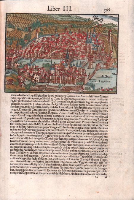 Tavola tratta dalla ' Cosmographiae Universalis, edizione in latino, Basilea, metà del XVI secolo.La ' Cosmographiae Universalis ' di Sebastian Münster (1488-1552), stampata per la prima volta Basilea nel 1544 dall’editore Heinrich Petri, venne più volte aggiornata e aumentata di nuove carte geografiche e rappresentazioni urbane nelle sue numerose edizioni che arrivano all’inizio del secolo successivo. Münster aveva lavorato a raccogliere informazioni al fine di ottenere un'opera che non deludesse le aspettative e, dopo un'ulteriore pubblicazione in tedesco abbellita da 910 stampe su legno, giunse nel 1550 all'edizione definitiva in latino, illustrata da 970 silografie. Vi furono poi numerose edizioni in diverse lingue, fra cui latino, francese, italiano, inglese e ceco. Dopo la sua morte di Münster (1552), Heinrich Petri prima, e il figlio Sebastian poi, continuarono la pubblicazione dell’opera. La ' Cosmographia universalis ' fu uno dei libri più popolari e di successo del XVI secolo, e vide ben 24 edizioni in 100 anni: l'ultima edizione tedesca venne pubblicata nel 1628, molto tempo dopo la morte dell'autore. La ' Cosmographia ' conteneva non solo le ultime mappe e vedute di tutte le città più famose, ma anche una serie di notizie enciclopediche di dettagli relative al mondo conosciuto, e sconosciuto. Il particolare successo anche commerciale di quest'opera fu dovuto in parte alle belle incisioni (tra i cui autori si possono citate Hans Holbein il Giovane, Urs Graf, Hans Rudolph Manuel Deutsch, David Kandel). Silografia, finemente colorata a mano, in ottime condizioni. Plate taken from the ' Cosmographiae Universalis, Latin edition, Basel, second half of the 16th Century. The ' Cosmographiae Universalis ' of Sebastian Münster (1488-1552), printed for the first time in Basel in 1544 by the publisher Heinrich Petri, was updated several times and increased with new maps and urban representations in its many editions until the beginning of the next century. Münster had worked to collect information in order to obtain a work that did not disappoint expectations and, after a further publication in German embellished with 910 woodblock prints, arrived in 1550 to the final edition in Latin, illustrated by 970 woodcuts. There were then numerous editions in different languages, including Latin, French, Italian, English and Czech. After his death in Münster (1552), Heinrich Petri first, and then his son Sebastian, continued the publication of the work. The ' Cosmographia universalis ' was one of the most popular and successful books of the 16th century, and saw as many as 24 editions in 100 years: the last German edition was published in 1628, long after the author's death. The ' Cosmographia ' contained not only the latest maps and views of all the most famous cities, but also a series of encyclopedic details related to the known, and unknown, world. The particular commercial success of this work was due in part to the beautiful engravings (among whose authors can be mentioned Hans Holbein the Younger, Urs Graf, Hans Rudolph Manuel Deutsch, David Kandel). Woodcut, fine later hand colour, in good condition. Cfr.