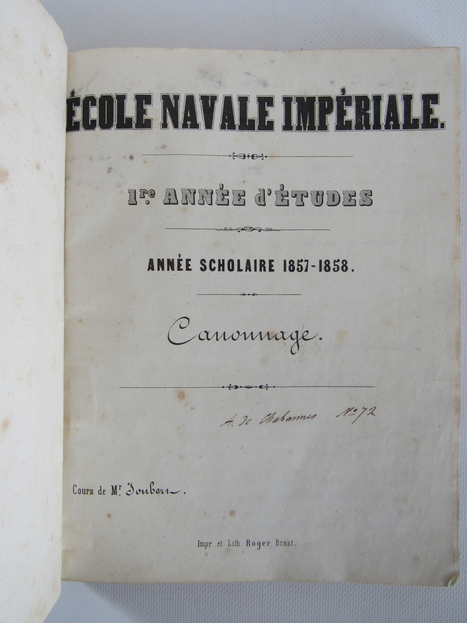Ecole navale impériale. 1re. année d'étude. Année scholaire 1857-1858. Cannonage. Cours de Mr. Joubert