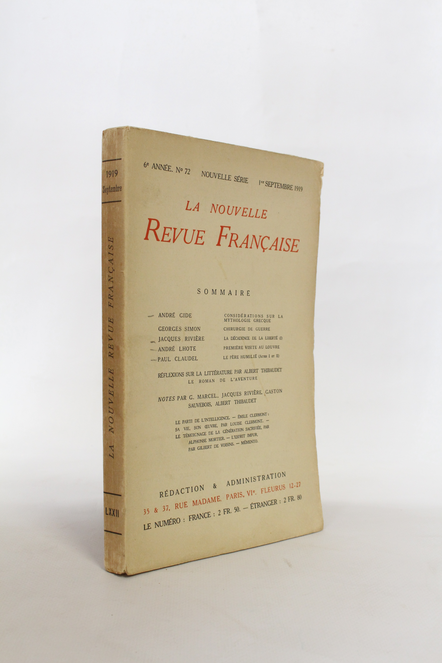 Considérations sur la mythologie Grecque [et] et La Décadence de la liberté (I) (2ème article) in La Nouvelle Revue française n°72 de l'année 1919
